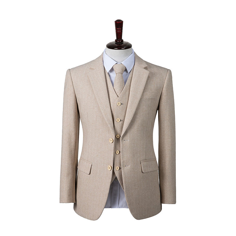 All good things start from the careful selection of fabrics. The fabric of a suit, like its soul, directly determines the comfort of wearing and the overall visual effect. Wool, as the first choice of suit fabric, is favored for its good breathability, warmth retention and natural drape. High-quality wool fabrics are finely woven to present a delicate luster and rich texture. Every touch can feel the perfect fusion of nature and craftsmanship.